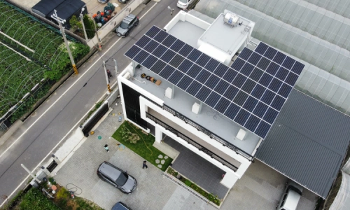 • 本案場兩座屋頂共設40片友達高效能太陽光電模組,每片容量為350瓦